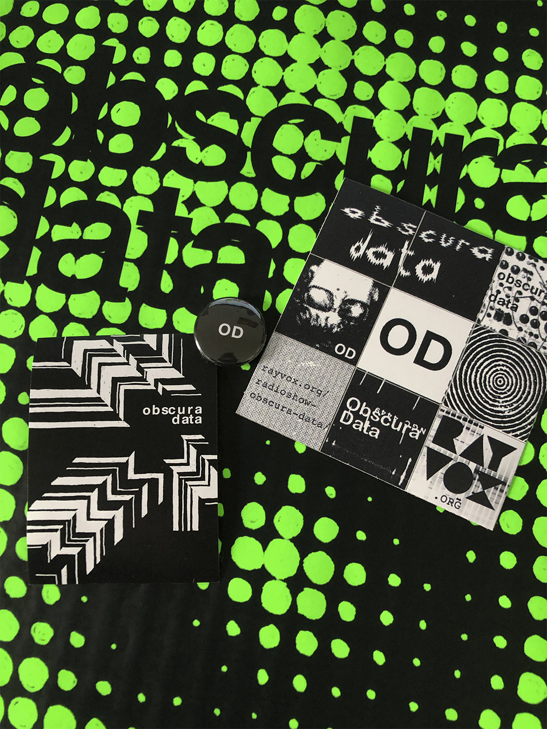 Poster, badge and stickers for Obscura Data radio show